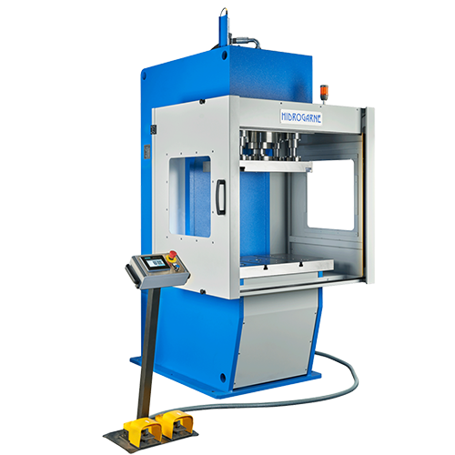 The CM-NC Series features an electro-welded S355JR steel structure that is stabilized and precision-machined post-welding for guaranteed parallelism and structural integrity. Each press is equipped with C45E steel upper and lower tables featuring DIN 650 slots, supported by 50 mm cylindrical lateral guides and maintenance-free bimetallic bushings, ensuring reliable performance with minimal friction.