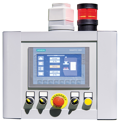 Solid-Arch Design with Precision-Machined Steel Tables: The R/NC Series presses are crafted from electro-welded S355JR steel, stabilized and machined to ensure parallelism and accuracy. Designed with finite element software, these presses consistently meet high-quality standards. The upper and lower tables, made from C45E steel with DIN-650 grooves, maintain perfect parallelism with the aid of four cylindrical side guides and maintenance-free bimetallic antifriction bushings.